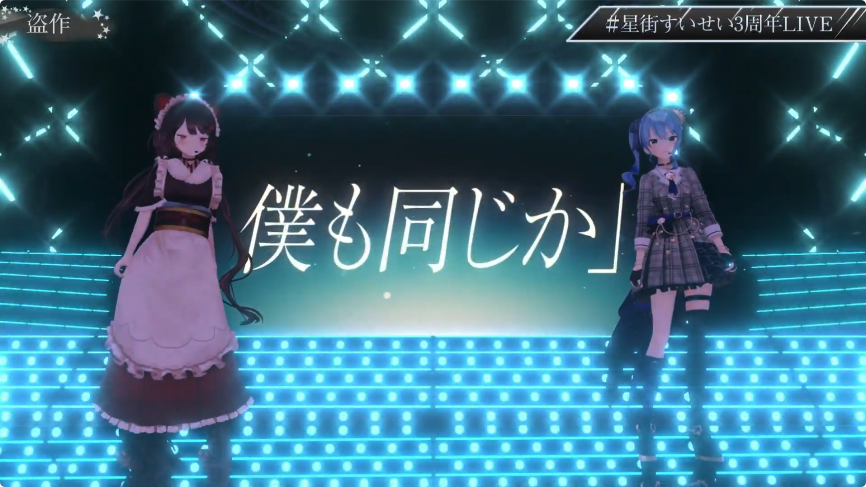 50万纪念演唱会的时候,星与空妈同台演唱了餞の鳥,和AZKi深情对唱了いのち。这两首歌都承载了阿星重要的回忆–いのち是阿星最初加入INNK时与AZKi一起唱的曲子,而餞の鳥的MV则象征了自己与空妈从最初的无人问津一步步走到如今成就的艰辛与坚持。而这次的Live则在全新的舞台上,与初次合作的Guest一起以崭新的方式演出。可能对星而言,50W纪念是对曾经自己的一个总结,也是对老粉一路陪伴的感谢,更是像餞の鳥所展示的一样,对过往时光的一次告别。而这一次三周年Live,则是展现了星依旧热爱这个舞台,想要在这个舞台上开创出自己更大的未来的决心。