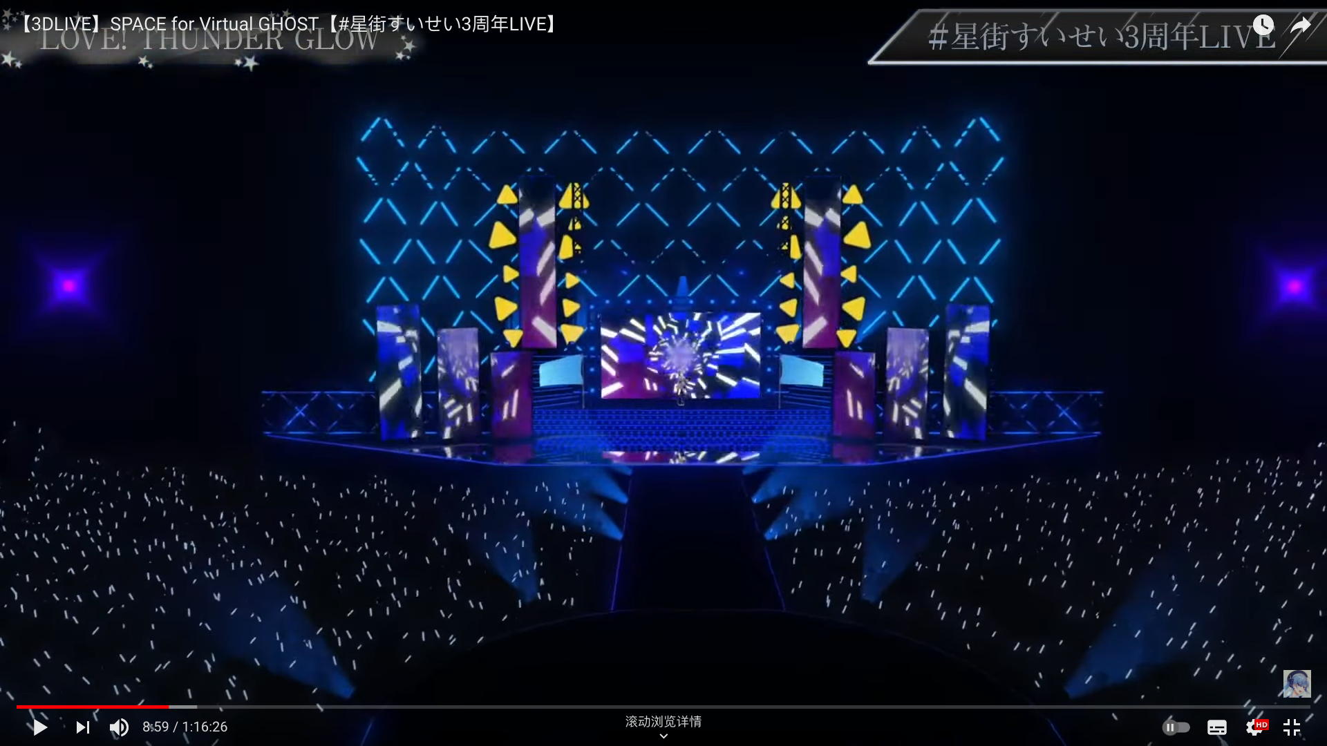 正如之前所说,本次舞台的舞台设计基本都是源于三次元已有的舞台创意。硬要说,比较有虚拟特色的就是打破屏幕让角色走出来这一个场景了。我个人认为,这种对于三次元尽可能的完整复刻应当是出于阿星自身的要求。正如她在后日谈所说,VTuber是一种存在于虚拟与现实的夹缝中的东西。若没有虚拟,那毫无疑问我们会失去很多美好的机会。但是若没有现实,虚拟的偶像也只是无根浮萍罢了。也许阿星执着地将三次元的舞台在二次元中呈现出来也是想要呼应VTuber这种同样是现实映入虚拟的存在吧。