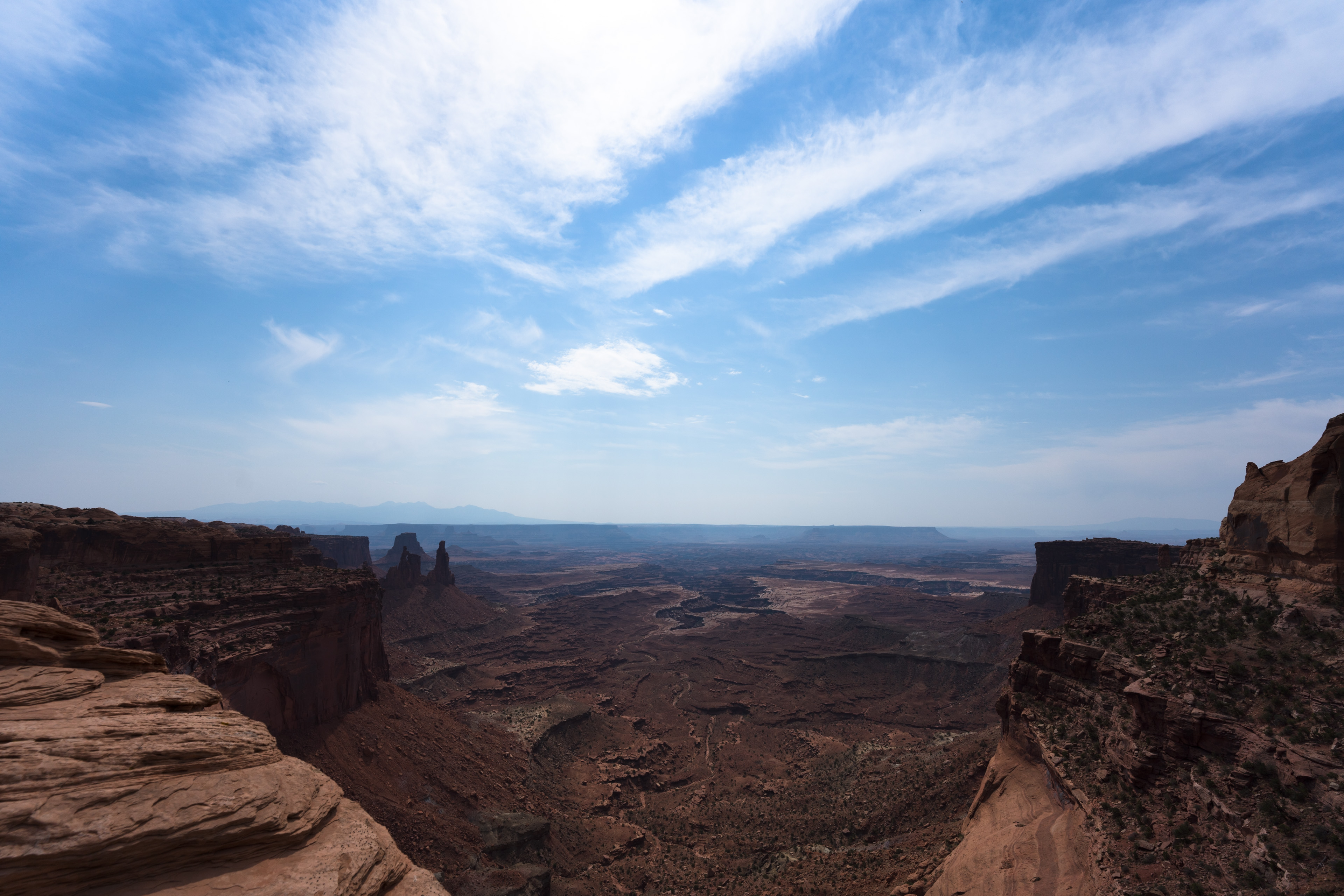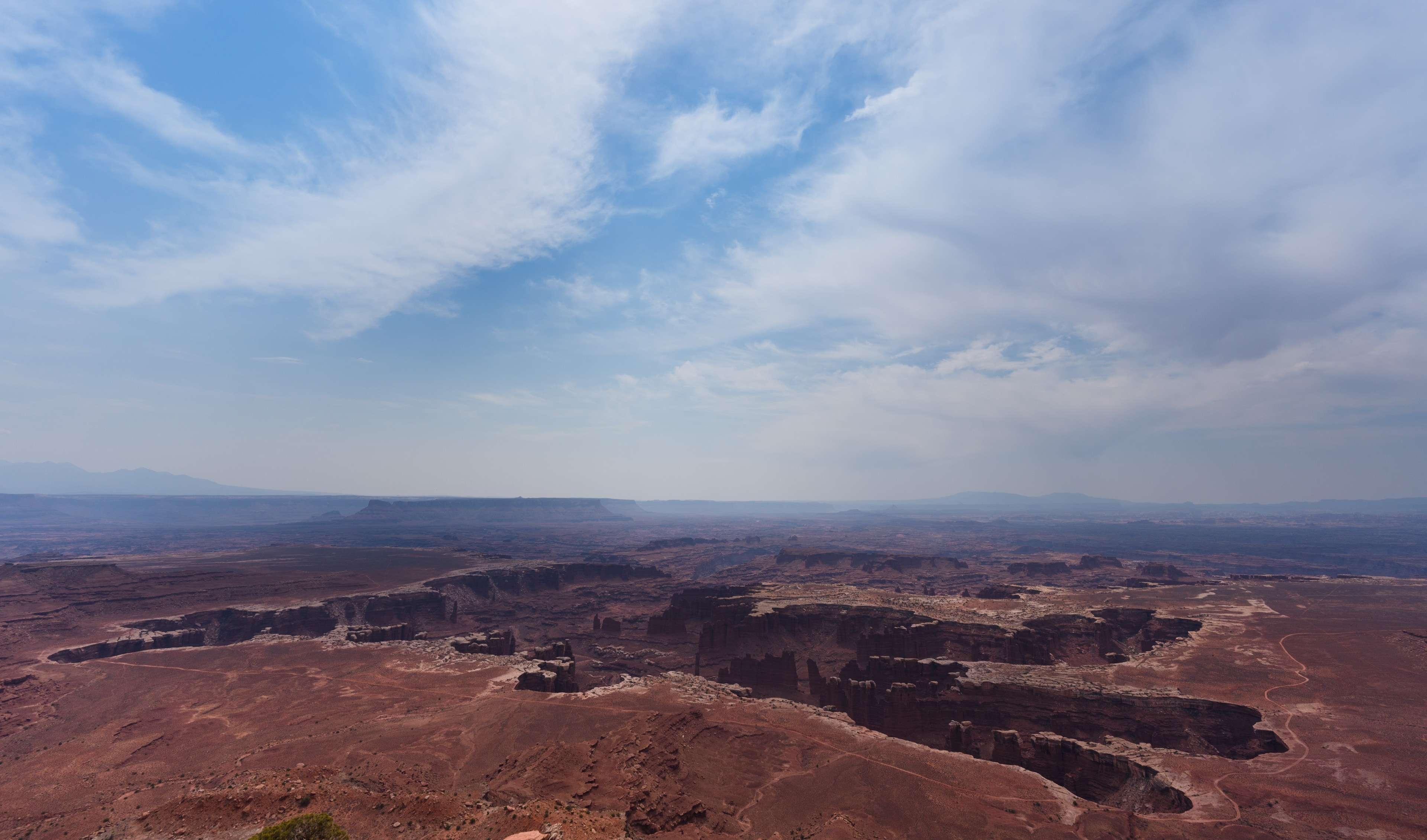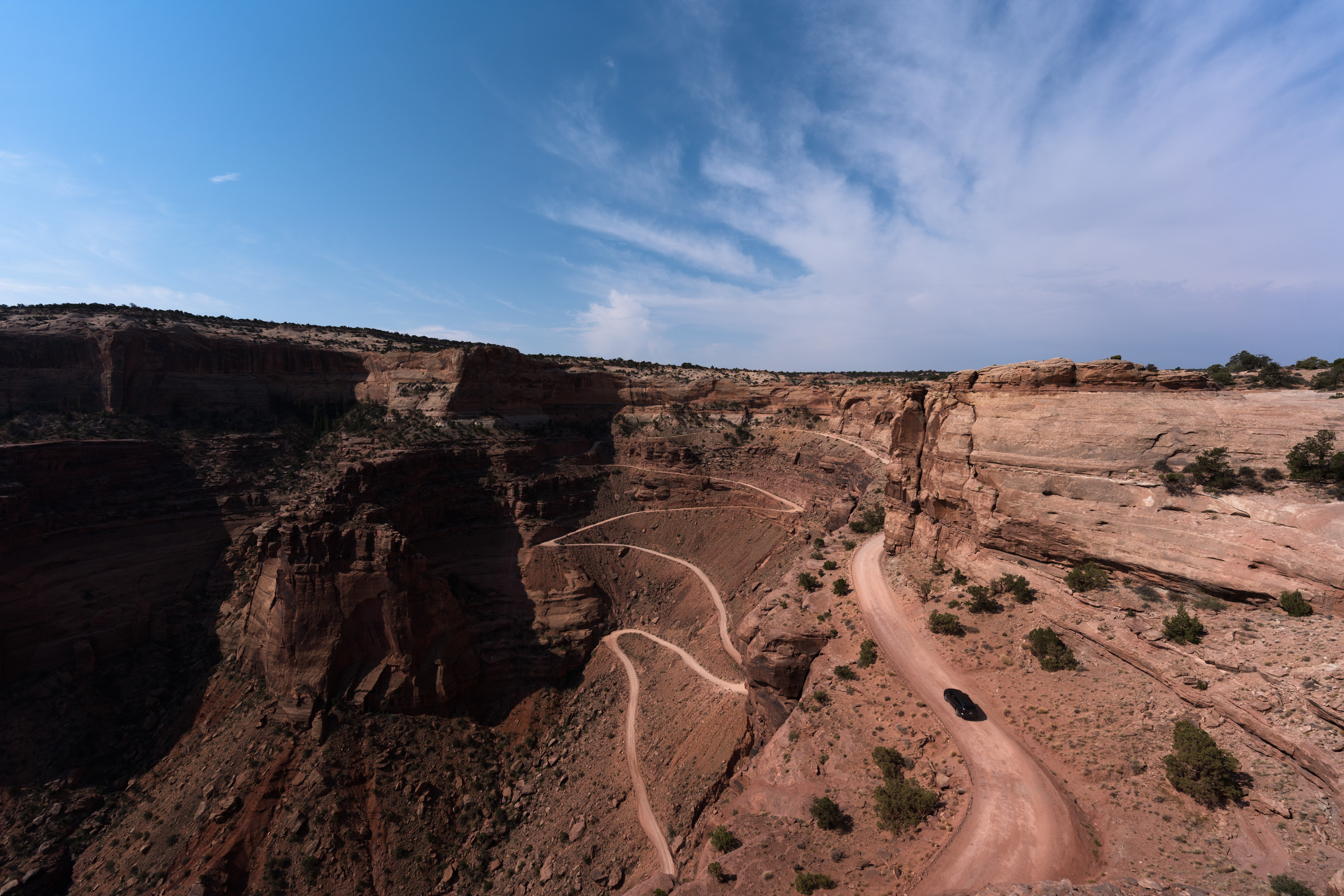 峡谷地国家公园和拱门国家公园只隔着一座山谷,然而二者所辖的面积却天差地远。峡谷地国家公园几乎囊括了整个犹他东南部的无人区——直到半个世纪前,这片广袤的土地深处到底为何样还几乎无人知晓。在这片区域,科罗拉多高原被科罗拉多河及其支流切割得支离破碎,深壑急流随处可见;目所能及之处尽是莽原,可谓美西野性的代名词。若说大峡谷之壮美在于其深度,峡谷地则在于其阔度。若想从公园西南侧的非铺装道路走一圈,甚至要马不停蹄,风餐露宿几天几夜的时间。