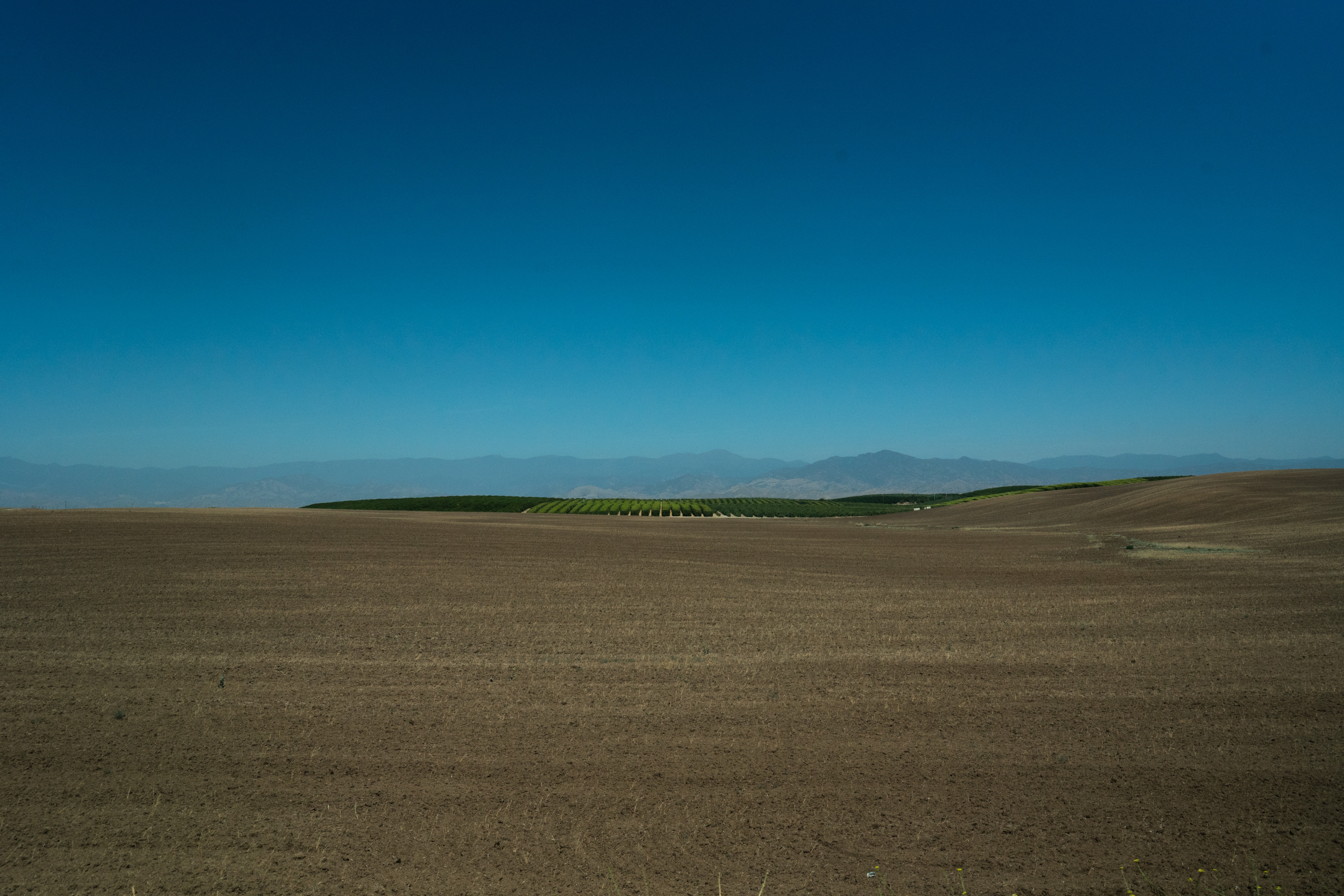 行程始于拥有着世界最大树木的巨杉/国王峡谷国家公园。从圣迭戈前往坐落于内华达山脉南段的这两座国家公园先要在中央谷地南端穿行一小段距离。夏季的中央谷地通常不负金州之名,一碧如洗的蓝天下漫山遍野都是灿烂的金黄;而夹在这两色之间翠绿的果林则让加州加冕美国最大农业州的桂冠。